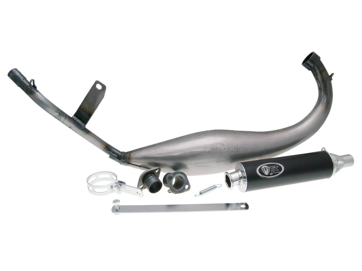 Bei Insidern steht der Name Turbo Kit schon seit langem im Einklang mit maximaler Leistung. Die Racing Turbo Kit Auspuffanlage Carreras 50 ist speziell für 50ccm Racing Zylinder konzipiert und gehört wohl zu den leistungsstärksten Anlagen in dieser Klasse. Bis dato einzigartige Features wie beispielsweise ein riesiger Krümmeranschluss von über 30mm sprechen für sich und lassen Raum für eine individuelle Gestaltung des Auslassports. Die Leistung steht bei diesem Mopedauspuff definitiv im Vordergrund.