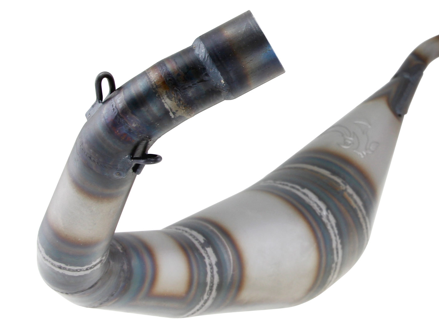 Handgeschweißte Low-Mount (unten geführte) Sportauspuffanlage von Voca Racing mit schwarzem Endschalldämpfer passend für Schaltmoped mit EBE / EBS oder D50B Motor.