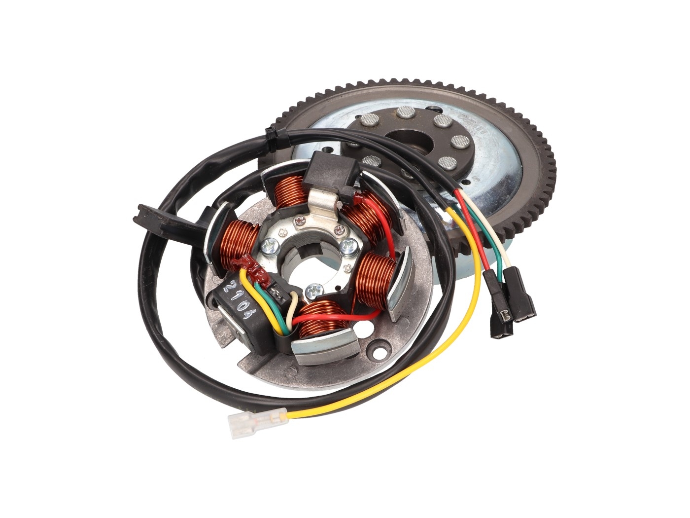 Originale Lichtmaschine / Zündung Stator und Rotor für Schaltmopeds mit Minarelli AM Motor und elektrischem Anlasser. Nicht passend für Fahrzeuge mit Kickstarter und für Power-Up Modelle mit Moric Zündung / Lichtmaschine.